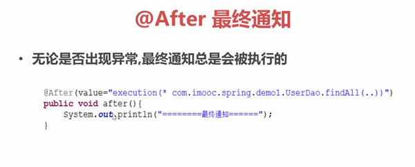 @After(value = "execution(* com.jesse.aspectj.demo1.ProductDao.findAll(..))")