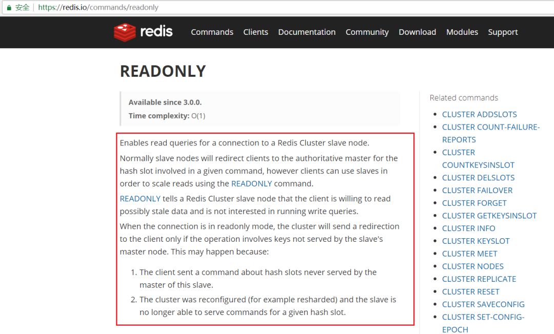 具体可以参阅redis官方文档(https://redis.io/commands/readonly),以下是reids在线文档中,对slave的readonly说明内容: