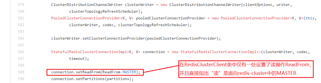 其中,这三行代码是能进行redis-cluster架构下读写分离的核心:
