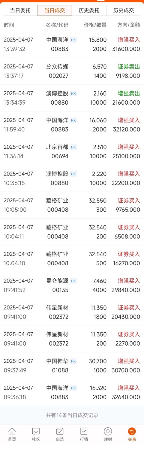 贴一个上面的昆仑的波段降本的操作例子以作作证,忘了截表头,第三列为成本,第四列为持仓,倒数第一列为买卖价格,红买绿卖。