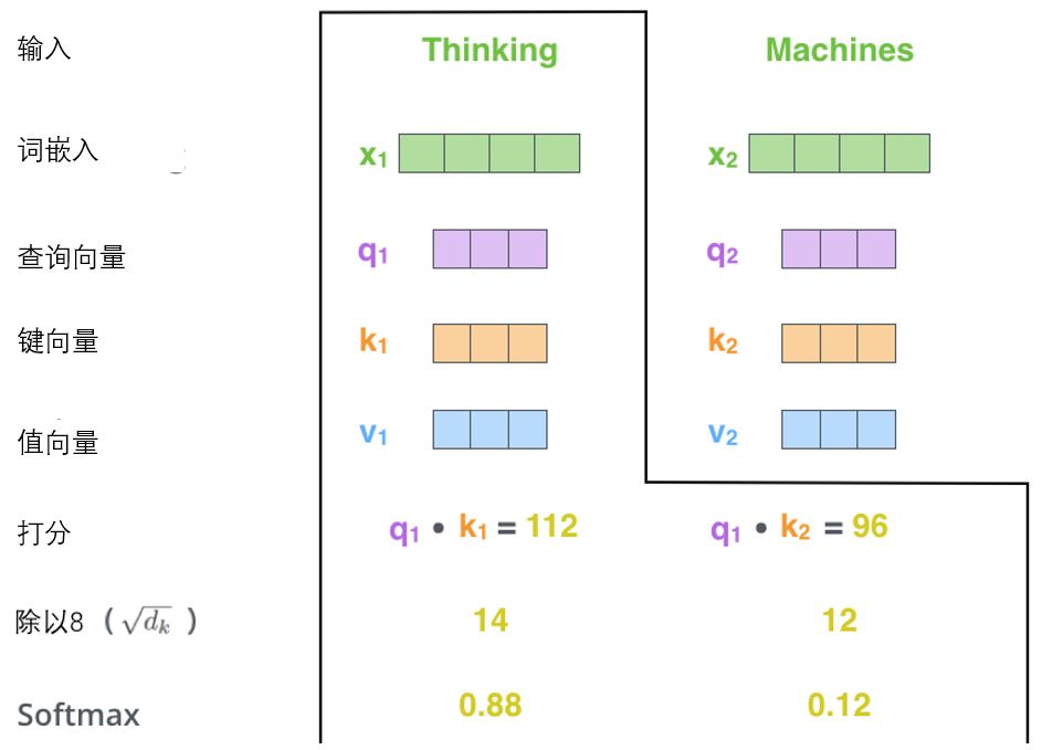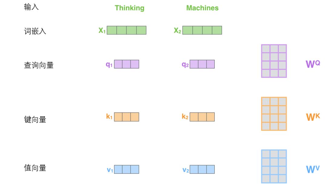 它们都是有助于计算和理解注意力机制的抽象概念。请继续阅读下文的内容,你就会知道每个向量在计算注意力机制中到底扮演什么样的角色。