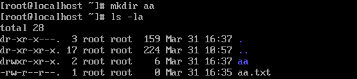 # mkdir aa 创建目录 (只能创建一级目录 /aa/bb 执行报错因为aa目录还不存在)(当前目录创建) (可以写多个)