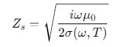Z_s = sqrt(1i * omega * mu0 / (2 * sigma_total));
