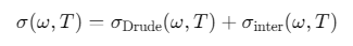 石墨烯的面电导率(单位:S)\(σ(ω,T)\)由两部分组成: