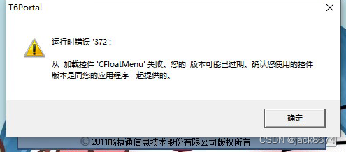 畅捷通T6 客户端登录提示 运行时错误 372 加载控件cfloatmenu失败