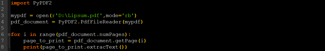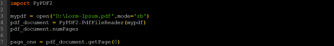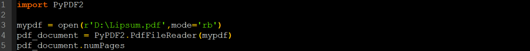 要阅读PDF文档,首先,我们必须要像其他普通文件一样打开它。使用以下脚本: