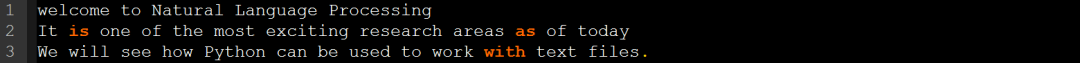 在多数情况下,这会使文本更容易相处。例如,我们现在可以轻松遍历每一行并打印行中的第一个单词。
