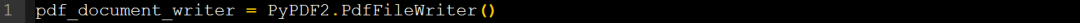 上面的脚本创建了一个可用于将内容写入PDF文件的对象。首先,我们将向这个对象添加一个页面,并将我们从另一个PDF中检索到的页面传递给它。