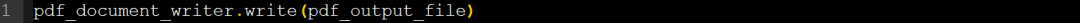 最后,我们需要在PDF编写对象上调用write()方法并将新创建的文件传递给它。