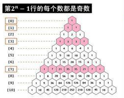 杨辉三角,是二项式系数在三角形中的一种几何排列,在中国南宋数学家杨辉1261年所著的《详解九章算法》一书中出现。在欧洲,帕斯卡(1623----1662)在1654年发现这一规律,所以这个表又叫做帕斯卡三角形。帕斯卡的发现比杨辉要迟393年,比贾宪迟600年