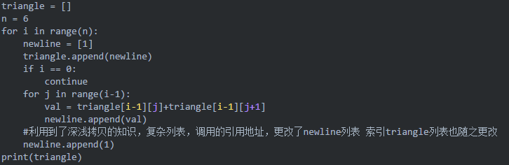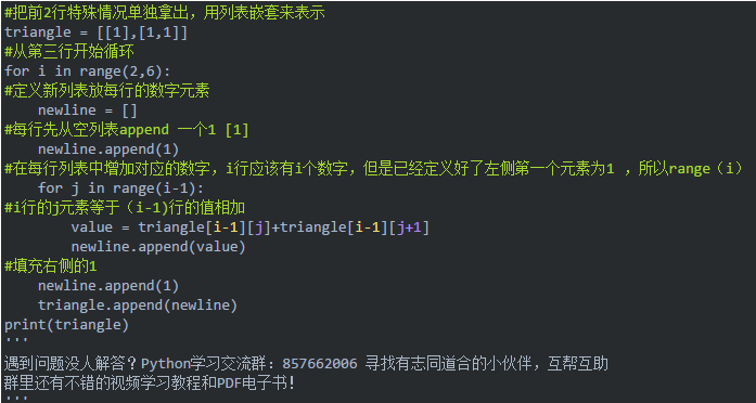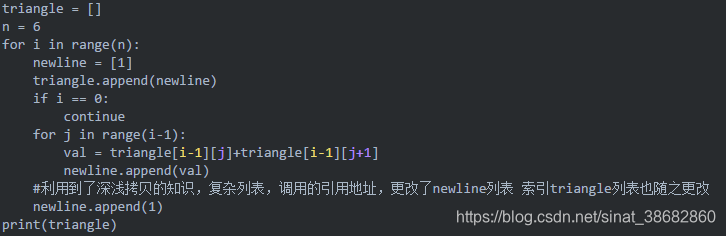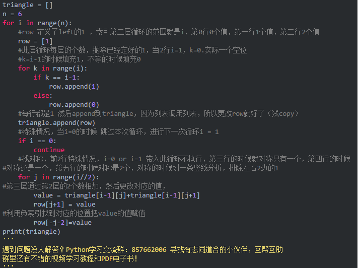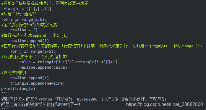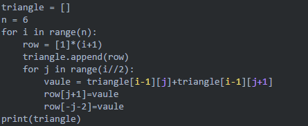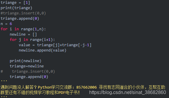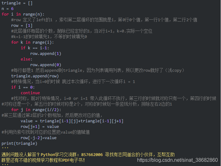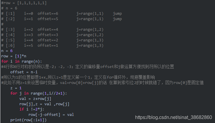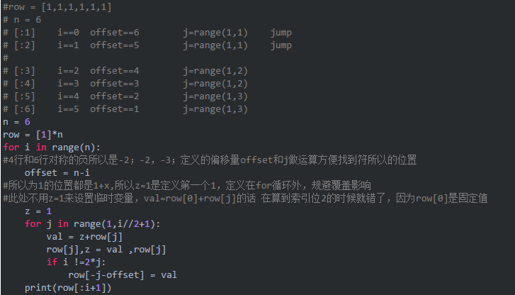 1.下一行依赖上一行所有元素,是上一行所有元素的两两相加的和,再在两头各加1。