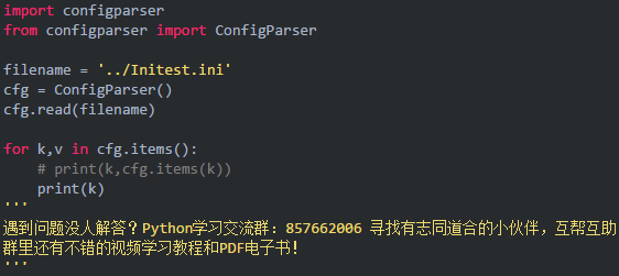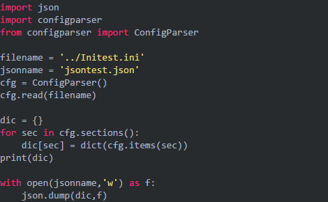 #用来操作ini文件;可以讲section当作key,section存储着键值对组成的字典,可以把ini文件当作一个嵌套的字典,默认使用有序字典