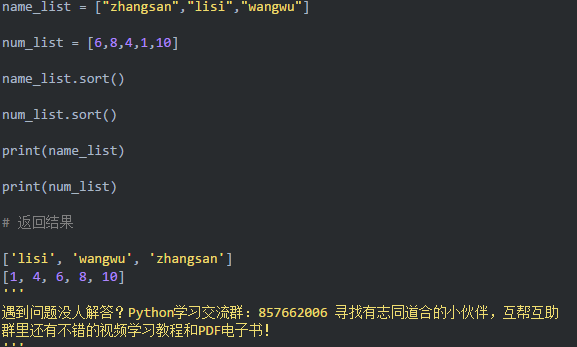 7-1 升序 list.sort 从小到大排序