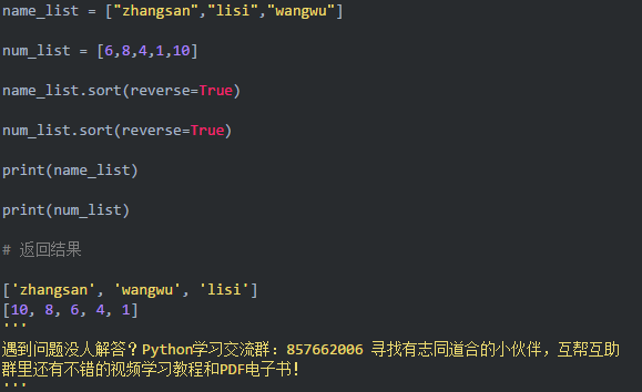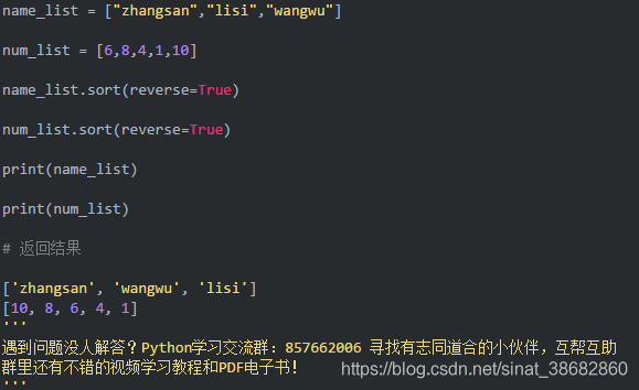 7-2 降序 从下到大排序 list.sort(reverse=True)