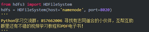 hdfs操作采用hdfs3库,这是c语言写的libhdfs库的python封装版,基本能满足常用的hdfs操作。