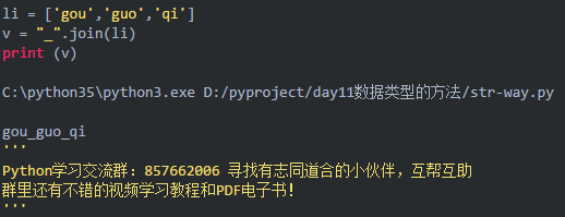 b.利用下划线将列表的每一个元素拼接成字符串 li = ['gou','guo','qi']