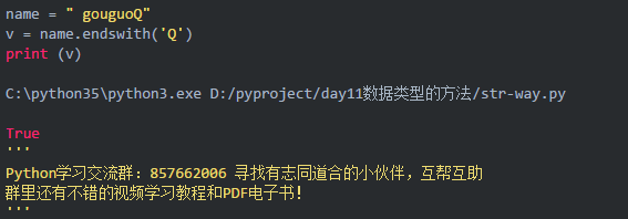 c.判断name变量对应的值是否以"Q"结尾,并输出结果