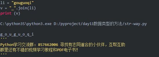 a.利用下划线将列表的每一个元素拼接成字符串 li = "gouguoqi"