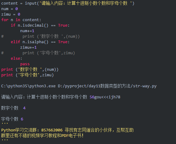 25.计算用户输入的内容中有几个十进制小数?几个字母?