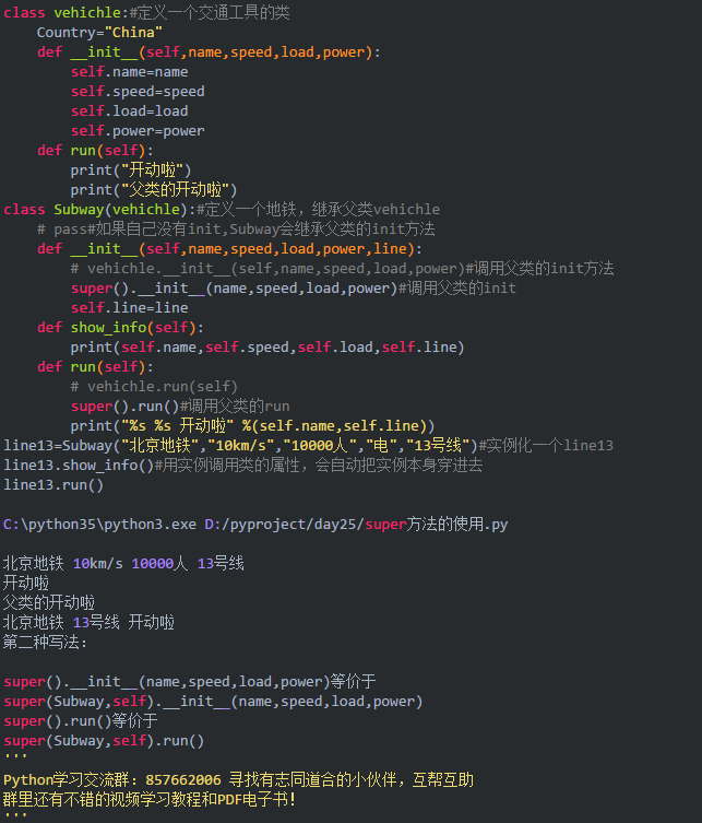 Python在子类中调用父类的方法super