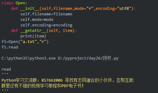 5、现在f.write也能调用了。read你会调用了write也是一样的呀,实例里面没有,类里面也没有,最终触发了getattr,getattr里面是调用的系统的open方法里面的write。所以肯定是可以的