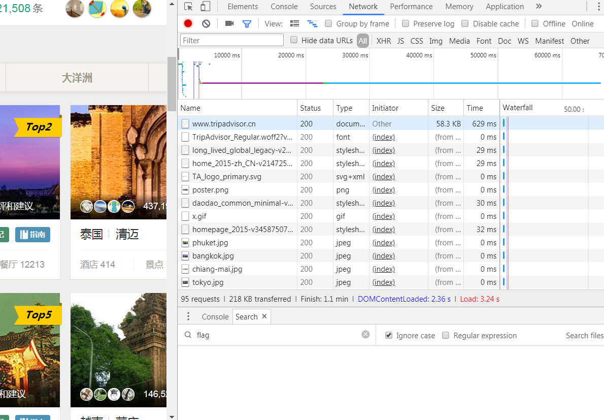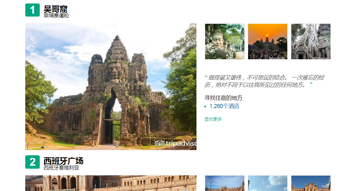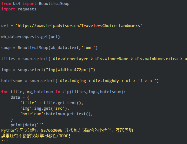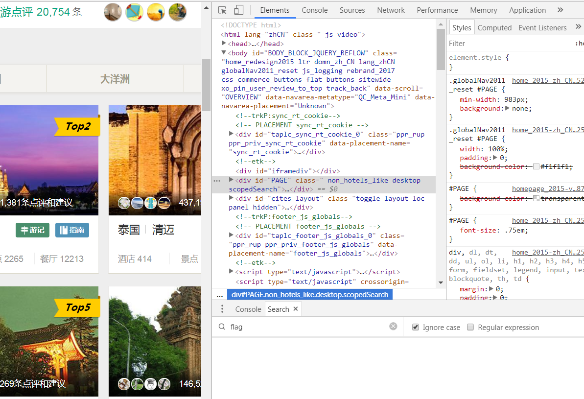 这个就是Request和Response这种交互行为在浏览器中的演示,那么接下来我们就是通过利用一种与服务器的交互行为来爬去我们想要的这个数据信息,在我们写查询代码之前,我们先来看一下我们要爬去的网页,筛选一下我们需要的元素。我们需要的元素是图片信息,以及图片名称,酒店个数。