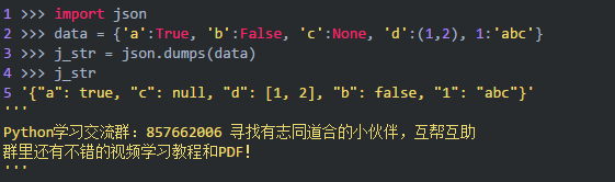 对于字典,json会假设key是字符串(字典中的任何非字符串key都会在编码时转换为字符串),要符合JSON规范,应该只对python列表和字典进行编码。此外,在WEB应用中,把最顶层对象定义为字典是一种标准做法。