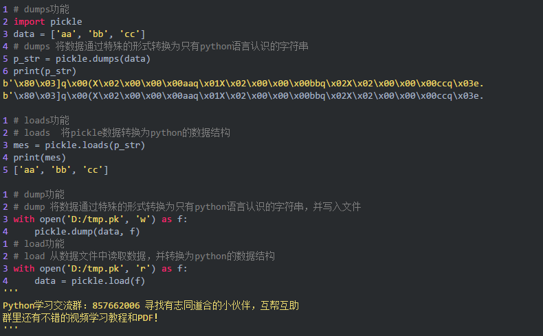 pickle: 用于python特有的类型和python的数据类型间进行转换