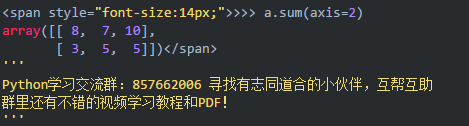 所以sum(axis=2)的值是 [ [8, 7, 10], [3, 5, 5]]. 验证如下,正确。