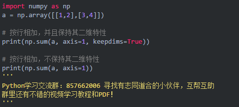 众所周知,sum不传参的时候,是所有元素的总和。这里就不说了。