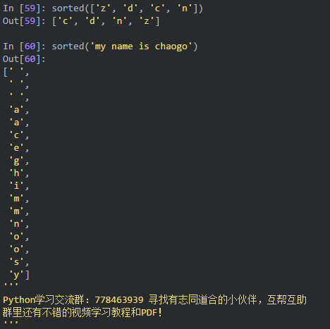 sorted函数可以将任何序列返回为一个新的有序列表(注意:sort函数是就地排序),如下: