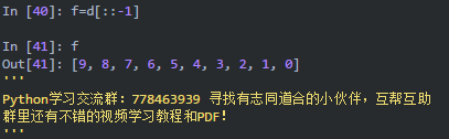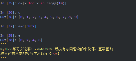 print(a[:3:-1]) #[9, 8, 7, 6, 5, 4] ------------反序时,stop/start的值仍然是正序时的值,start > stop ,需要特别注意