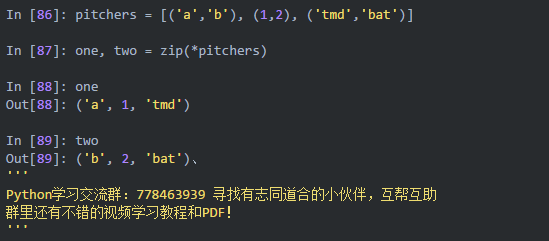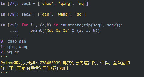 zip用于将多个序列(列表、元组等)中的元素“配对”,从而产生一个新的元组列表;zip可以接受任意数量的序列,最终得到的元组数量由最短的序列决定;zip最常见的用法是同时迭代多个序列,还可以结合enumerate一起使用,如下: