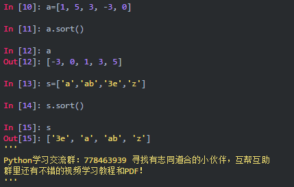 列表的sort方法可以实现就地排序(无需创建新对象,字符串按首字母进行排序)