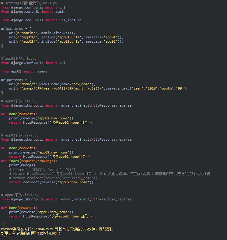 命名空间是在settings同级目录下的urls.py中的include使用namespace进行命名
