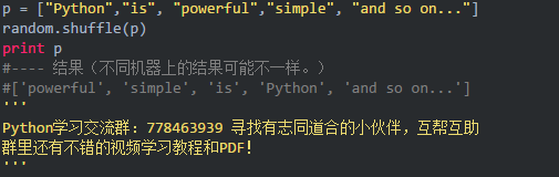 random.shuffle的函数原型为:random.shuffle(x[, random]),用于将一个列表中的元素打乱。如: