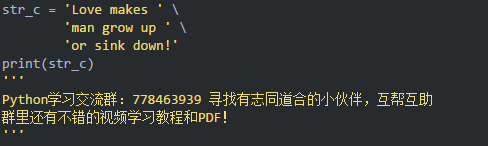 所以我们在编程中,一行写不完的字符串可以换行,最后的结果是一样的。
