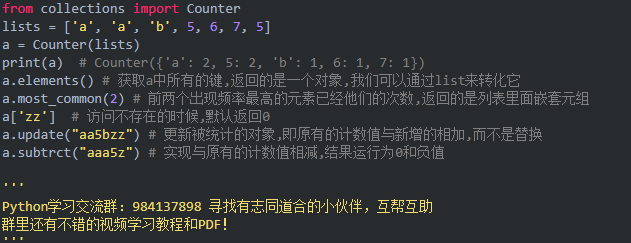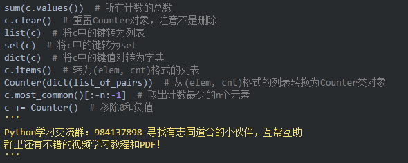 Counter()对象还有几个可以调用的方法,代码里面分别进行了说明