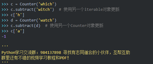 下面是一些Counter类的常用操作,来源于Python官方文档