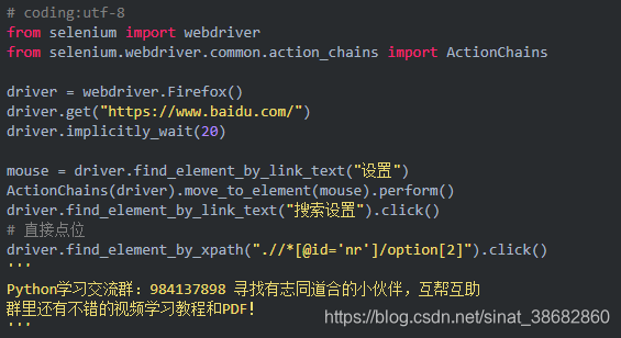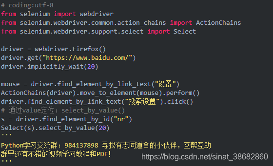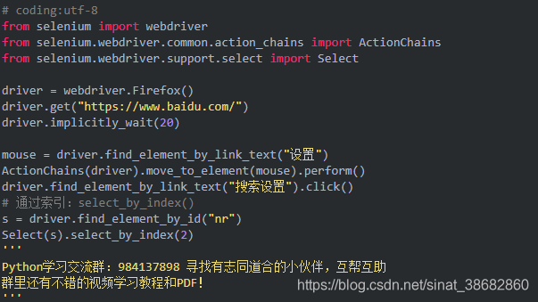 1.除了上面介绍的两种简单的方法定位到 select 选项,selenium 还提供了更高级的玩法,导入 Select 模块。直接根据属性或索引定位。