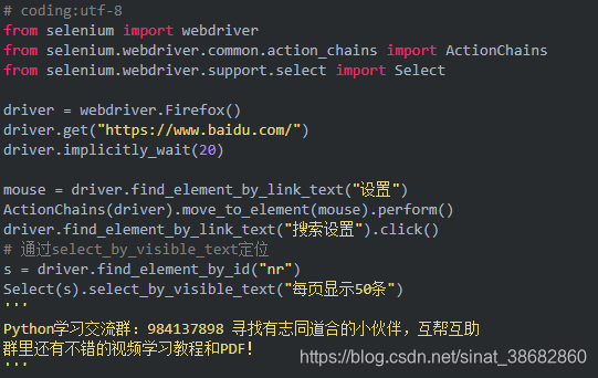 2.定位“每页显示 50 条”:select_by_visible_text("每页显示 50 条")