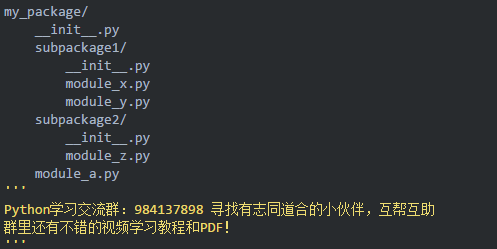 接下来进入subpackage1文件夹,编辑其中的_init_.py文件,输入以下代码: