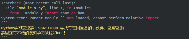 这指的是,module_x.py是某个包中的一个模块,而你试图以脚本模式执行,但是这种模式不支持相对导入。