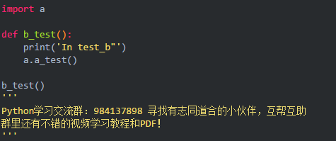 然后在同个文件夹中创建另一个模块,将其命名为b.py。