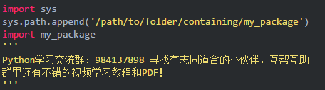 注意,你需要添加的是mypackage的上一层文件夹路径,而不是mypackage本身。原因是my_package就是我们想要使用的包,所以如果你添加它的路径,那么将无法使用这个包。
