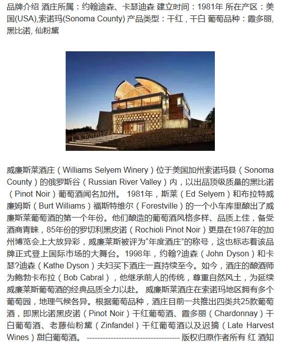 1.威廉斯莱酒庄