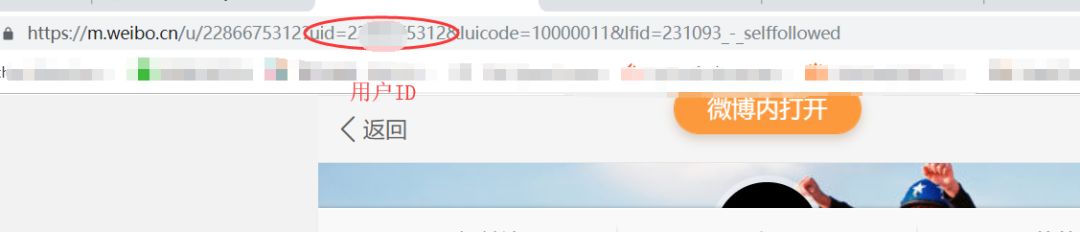 这个很简单,在浏览器里登陆微博移动端,然后点进想要监控的用户的微博主页,就可以找到该用户的用户id了,例如下图所示: