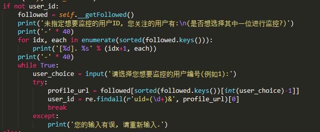 用户选择完毕后,利用正则表达式获取该微博用户的用户id: