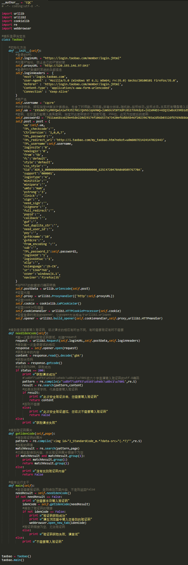 2. 淘宝在登录时必须要输入验证码,在经过几次尝试失败后最终获取了验证码图片让用户手动输入来验证。