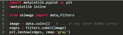 SciPy是Python的另一个核心科学模块(如NumPy),可用于基本的图像操作和处理任务。特别是,子模块 scipy.ndimage(在SciPy v1.1.0中)提供了在n维NumPy数组上运行的函数。该软件包目前包括线性和非线性滤波,二进制形态,B样条插值和对象测量等功能。